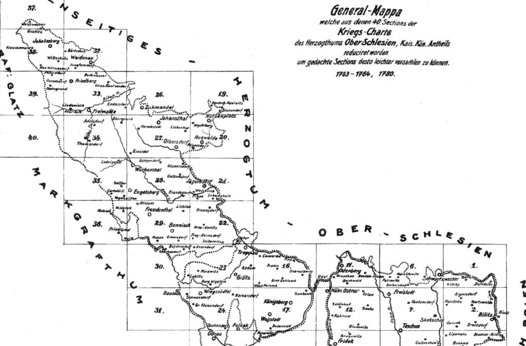 Gdy w 1740 roku umiera Karol VI, Fryderyk II nie wahał się i siłą zajął cały Śląsk. Podczas drugiej rundy w postaci kontrofensywy ze strony następczyni tronu habsburskiego Marii Teresy, Fryderyk II odparł atak i jeszcze bardziej umocnił swoje władztwo na terenie Śląska. Rozpoczął władać Śląskiem jak kolonią. Z tego okresu odnotowuje się pierwsze próby germanizacji Polaków. Podporządkował stany wyższe, narzucił pruską administrację i zlecił sporządzanie map. Doskonale wiedział, że Austriacy tak łatwo nie odpuszczą Śląska. Z tego okresu mamy doskonałe mapy von Wredego z lat 1747-1753 oraz późniejsze 1764-1770 autorstwa von Reglera. Obie mapy dostępne w katalogu berlińskiej biblioteki, link do filmu. A jakie mapy mieli Austriacy? Takie, które pomogły im utracić jedną z najbogatszych prowincji. Nie mieli żadnych. Przynajmniej brakiem map zasłaniał niedociągnięcia militarne marszałek Franz Moritz von Lacy raportując Marii Teresie porażkę podczas III wojny o Śląsk. Problem jednak był poważny, a monarchia przystąpiła do realizacji map wojskowych z cała swą starannością.